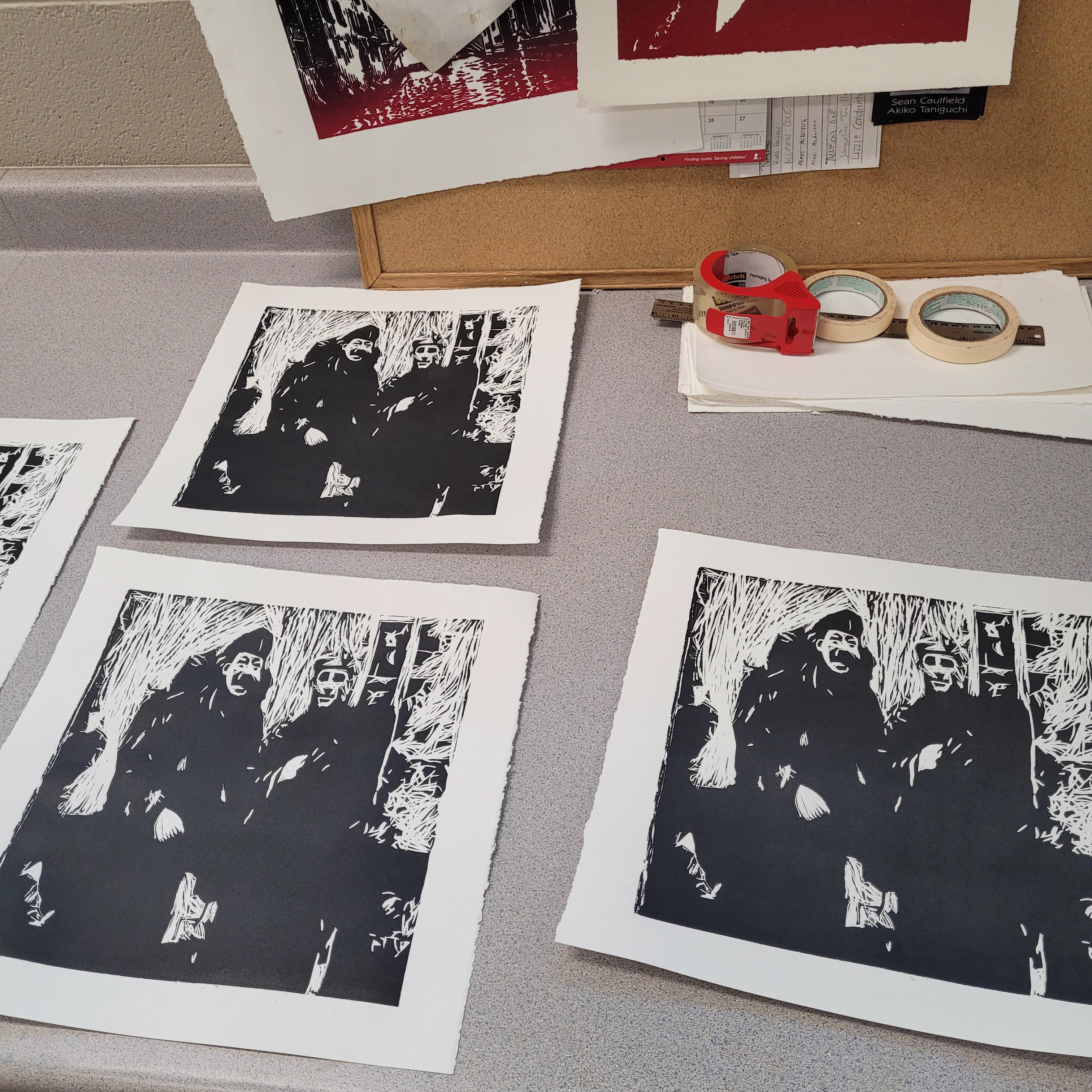 Collection of lino, spray paint, marbling, screen print and riso